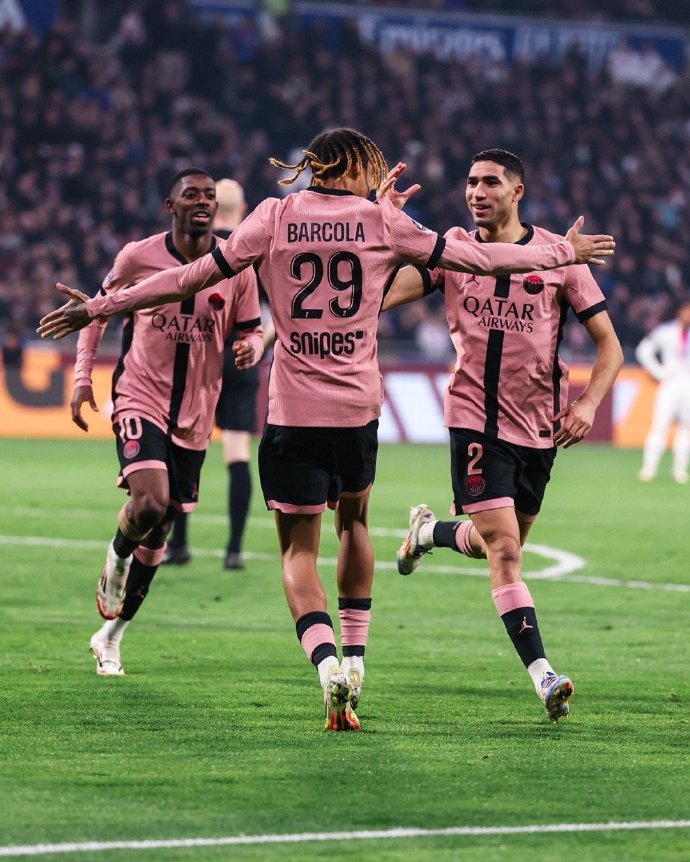 第53分鐘,巴爾科拉下底倒三角傳球,阿什拉夫禁區(qū)后點推射破門,巴黎圣日耳曼1-0里昂。